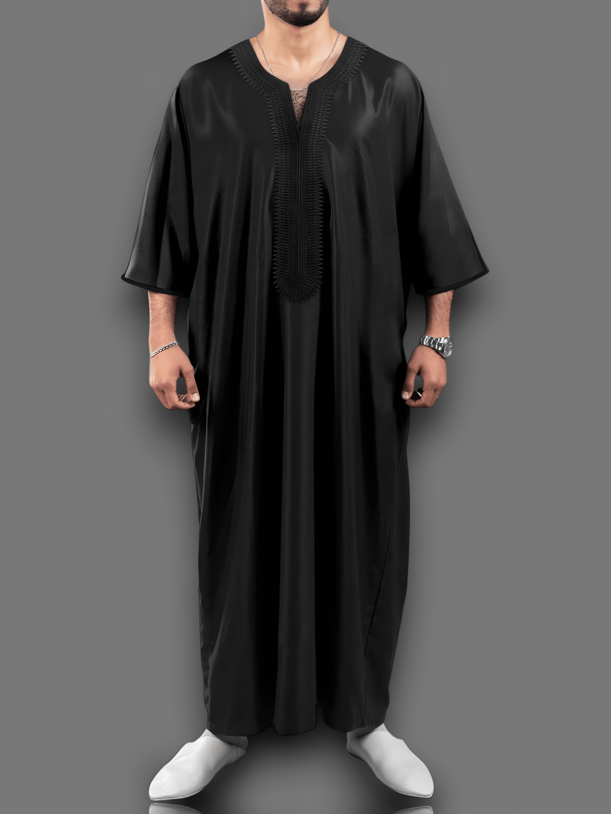 Handcrafted with meticulous attention to detail, this thobe is made from high-quality polyester that feels soft against the skin and offers breathability throughout the day. The oversize fit enhances ease of movement, ensuring you remain comfortable whether at prayer, celebration, or daily wear. Please note, subtle tailoring marks may be present but they naturally fade with washing, underscoring the authentic handcrafted process behind each garment.