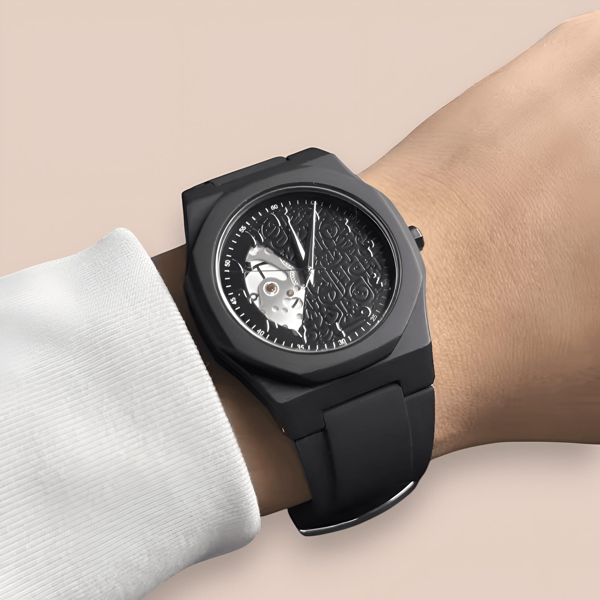 This exquisite wristwatch is a celebration of refined taste and timeless heritage, meticulously crafted for the discerning individual who values both form and meaning. Inspired by the elegance of Arabic design, the watch features a sleek dark background that highlights the grace of Arabic indices and intricate calligraphy each stroke a tribute to centuries of artistic tradition. It is a harmonious fusion of contemporary minimalism and cultural depth, designed not just to mark time, but to honor the moments that shape us.